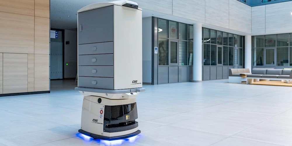 Um das Pflegepersonal im Gesundheitswesen effektiv zu entlasten, entwickelte unser langjähriger Kunde DS Automotion das innovative Mini-Fahrerlose Transportfahrzeug (FTF) "Sally". Die Sally ist speziell darauf ausgelegt, Sterilgut zu transportieren, Dokumente zu liefern und Medikamente direkt auf den Stationen zu verteilen. Diese Aufgaben übernimmt die Sally zuverlässig und ermöglicht dadurch eine reibungslose Interaktion zwischen Mensch und Maschine.