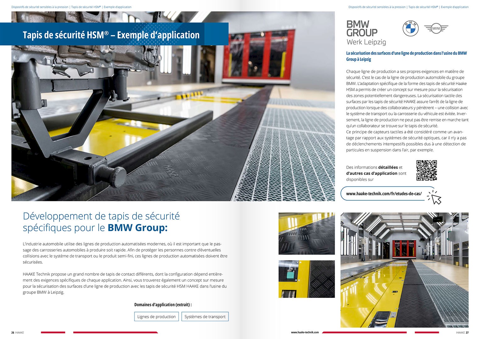 Pour se protéger contre ces dangers, nos bumpers de sécurité HSB sont utilisés afin d'absorber des distances de freinage plus longues. Ils fonctionnent selon le principe d'ouverture, une technologie de sécurité hautement efficace et fiable et garantissent lorsqu'ils sont touchés, par ex. par une partie du corps, l'arrêt immédiat de la transmission automatique.